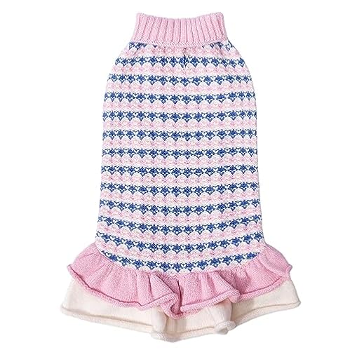 $9.99CuteBone Fancy Dog Sweater Dress, Soft and Stretchy Dog Clothes for Small Dogs Girl, Red Blue Puppy Sweater Pullover Ruffle Dress Pet Outfit Cat Apparel