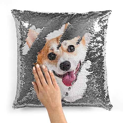 Custom Photo Sequin Pillow Cases | Silver Mermaid Cover w Any Picture | Magic Reversible Throw Pillowcase Decorative Cushion & Mothers Day Gifts, Gift for Mom – Home Decor Personalized Photo Gifts