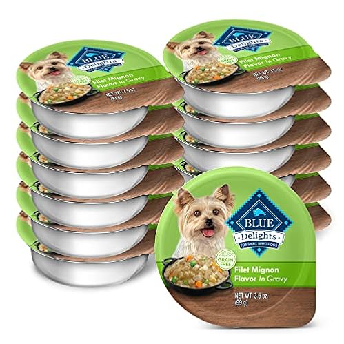 Blue Buffalo Delights Natural Adult Small Breed Wet Dog Food Cup, Filet Mignon Flavor in Hearty Gravy 3.5-oz (Pack of 12)