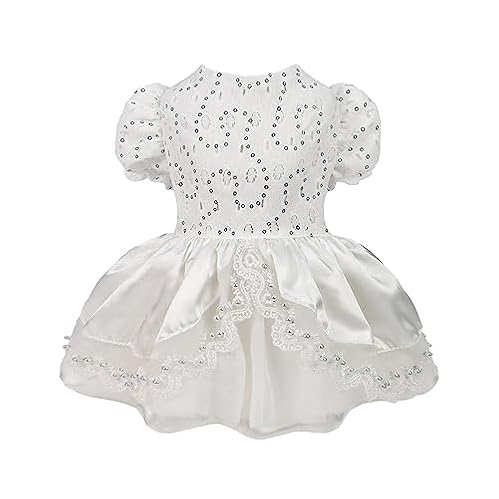 $30.99Fancy Dog Tutu Dress, Sparkly Sequin Dog Clothes for Small Dogs Girl, Formal Pet Wedding Attire, Cat Bridal Outfit, Pearl White, XS