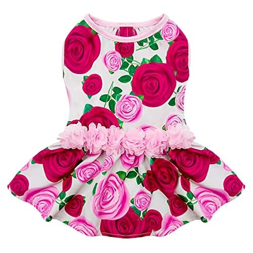 $19.89KYEESE Dogs Dresses Rose with Flowers Decor Elegant Princess Doggie Dress for Small Dogs Spring Summer Dog Apparel