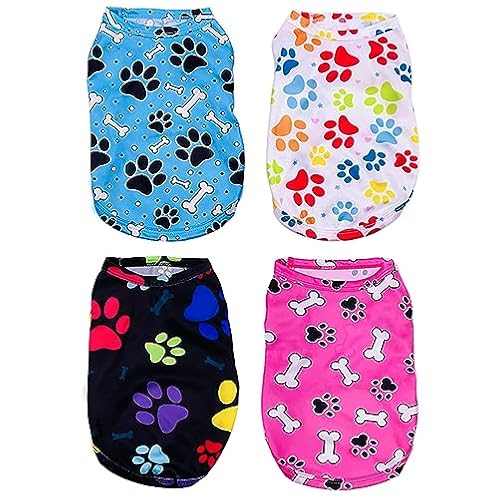 $14.99PET SHOW 4 Pack Paw Bone Printed Dog Clothes Shirts Soft Dog Vest Lightweight Sleeveless Cats Doggies T-Shirts Puppies Tank Top Tee Cat Clothes for Small Medium Dogs White Black Pink Blue S