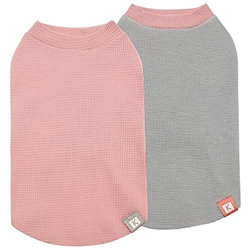 $14.99KYEESE 2Pack Dog Shirts Waffle for Small Dogs Stretchy Dog T-Shirts Lightweight Dog Tank Top Sleeveless Dog Vest Breathable Cat Shirt, Small, Pink+Grey