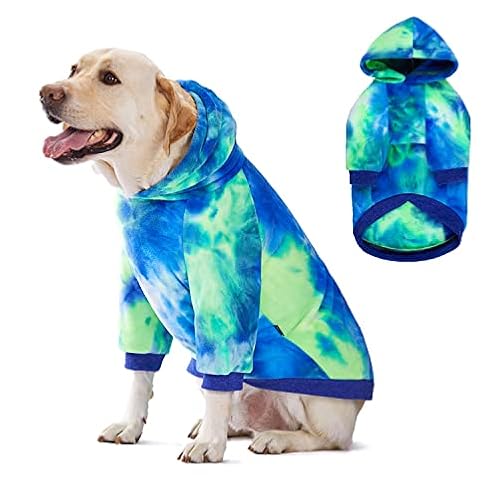 $9.99Dog Tie Dye Hoodie, Dog Winter Clothes, Pet Hooded Sweatershirt Pullover, Dog Coat Apparel for Small Medium Large Dogs(Blue Green,4XL-Chest 28”)