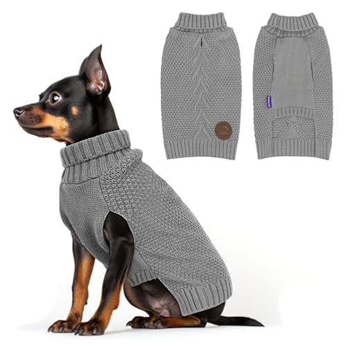 $20.89cyeollo Small Dog Sweater with Leash Hole Turtleneck Knitted Warm Dog Clothes Puppy Sweaters for Small Dogs, Grey S