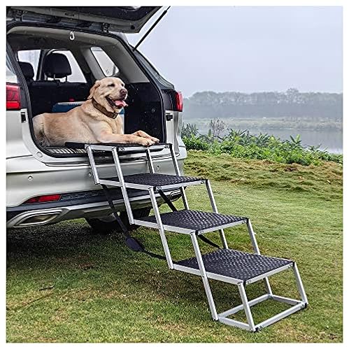 $89.99Extra Wide Dog Stairs for Large Dogs, Foldable Aluminum Dog Steps for Cars, Trucks, SUV, Jeep and High Beds, Dog Car Stairs for Large Dogs Up to 250 lbs, 4 Steps