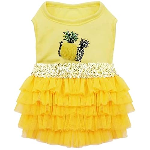 - KYEESE Dog Dress Pineapple Yellow Tiered Dogs Beach Dresses Medium$16.99