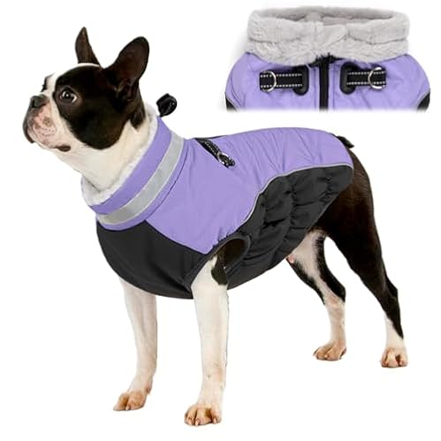 $29.99WOYYHO Dog Winter Coat Reflective Warm Waterproof Dog Clothes with Built-in Harness Windproof Pet Dog Jackets for Small Medium Large Dogs (Purple, Large)