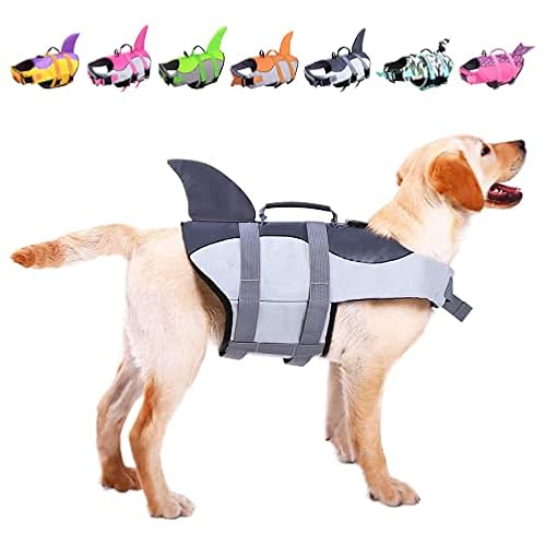 $9.99ASENKU Dog Life Jacket Pet Life Safety Vest for Swimming Boating, Dog Shark Life Jackets Dog Lifesavers Swimsuits for Pool, Dog Water Floatation Vest for Small Medium Large Dogs, Gray, Large