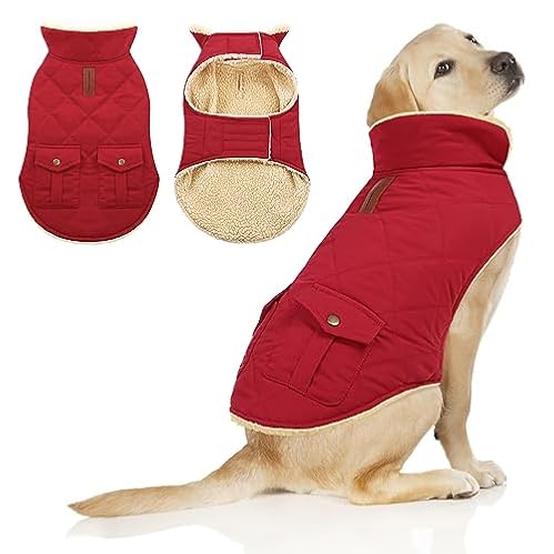 $38.99ASENKU Dog Winter Coat, Dog Fleece Jacket Plaid Reversible Dog Vest Waterproof Windproof Cold Weather Dog Clothes Pet Apparel for Small Medium Large Dogs Red XL