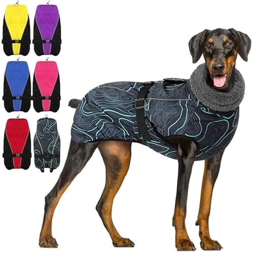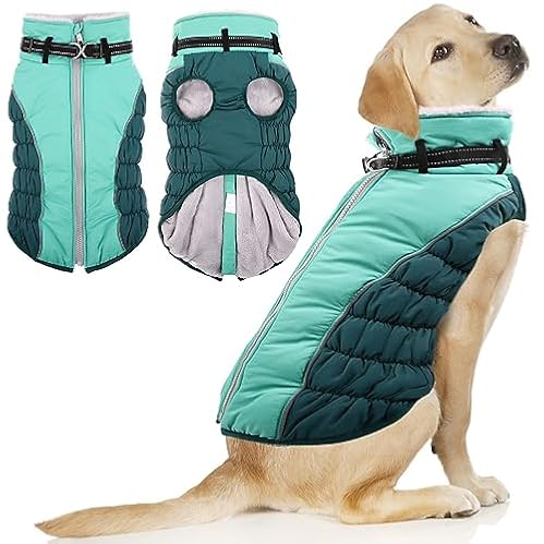 $13.29ASENKU Warm Dog Winter Coat Fleece & Turtleneck Dog Puffer Jacket with Pockets Waterproof Pet Cold Weather Clothes with Leash Hole for Medium Large Dogs
