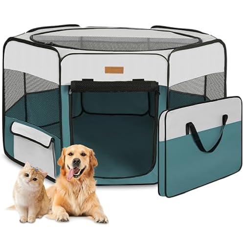 $30.99Dog Playpen,Pet Playpen,Foldable Dog Cat Playpens,Portable Exercise Kennel Tent Crate,Water-Resistant Breathable Shade Cover,Indoor Outdoor Travel Camping Use for Small Animals+Free Carrying Case(M)