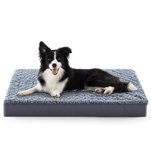 $21.98KSIIA Orthopedic Dog Bed Dog Crate Bed Waterproof Dog beds for Large Dogs Deluxe Plush Washable Dog Bed with Egg Crate Foam & Removable Cover, 35 x 22 Inch, Gray