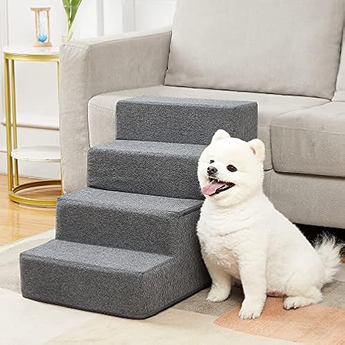 $36.99Dog Stairs 4 Steps, 19.6 inch High Pet Stairs, 30D Foam Dog Dtairs & Steps Curved Steps and Small Step Angle Protect Your Pet’s Joints, Dog Steps for Small Dog, Dog Stairs to Bed, Gray