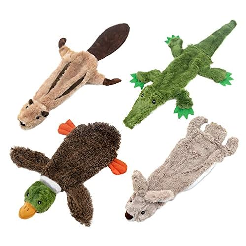 Best Pet Supplies 2-in-1 Stuffless Squeaky Dog Toys with Soft, Durable Fabric for Small, Medium, and Large Pets, No Stuffing for Indoor Play, Supports Active Biting and Play – 4 Figures, Small