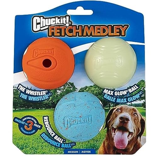 $4.55Chuckit! Fetch Medley Dog Ball Dog Toys, Medium (2.5 Inch) Pack of 3, for Medium Breeds, Includes Whistler, Max Glow and Rebounce Balls