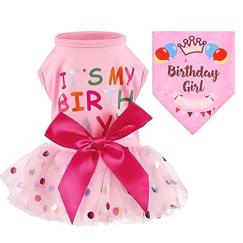 $16.99Fuyamp Dog Birthday Dress, Girl Puppy Skirt Clothes Pink Dog Tulle Dress with Bandana for Small Dogs Cotton Dog Wedding Dress, Dog Birthday Outfit Summer Clothes for Pets Party Costume