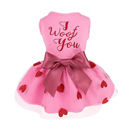 $13.88I Woof You Dog Dress 100% Cotton Girl Dog Clothes Pet Apparel Doggie Tutu with Bowknot Cat Clothing Puppy Dresses Doggy Costume Attire Pink Large