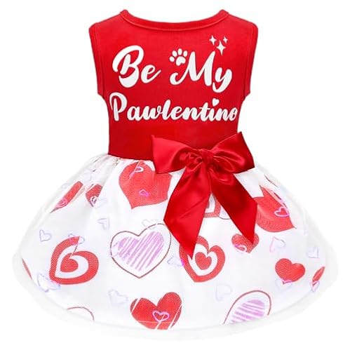 $11.99Dog Valentines Day Clothes Be My Pawlentine Dog Valentines Outfit Red Tulle Dog Dress with Bowknot for Small Medium Large Dogs Cat Girl