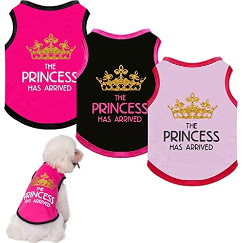 $4.49AXIIJGL 3 Pieces Small Dog Shirts Summer Autumn Pet T-Shirts Soft Puppy Cotton T-Shirts Fall Cute Princess Dog Shirts Printed Dog Sleeveless Shirt Vest with Funny Letters Cat Girl