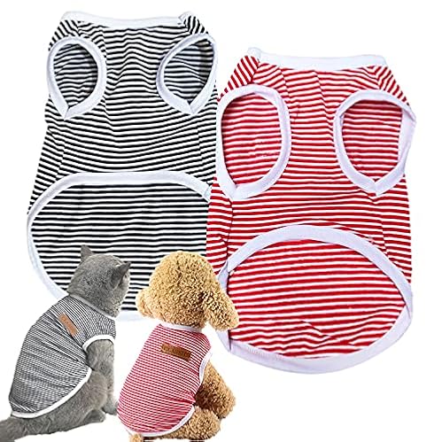 $15.99CAISANG Classic Dog Shirt 2 Pack Striped T-Shirt Puppy Clothes for Small Dogs Boy, Stretchy Summer Shirts Cotton Cat Vest Doggy Tee Tank Top Apparel for Small Medium Pet Kitten Outfits Costume S