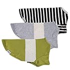 3 Pack Color Block Striped Dog Shirt, Summer Dog Clothes for Small Dogs, Breathable Lightweight Pet Tshirt with Sleeves, Cat Outfit, Oliver Green, Grey, Black, Large