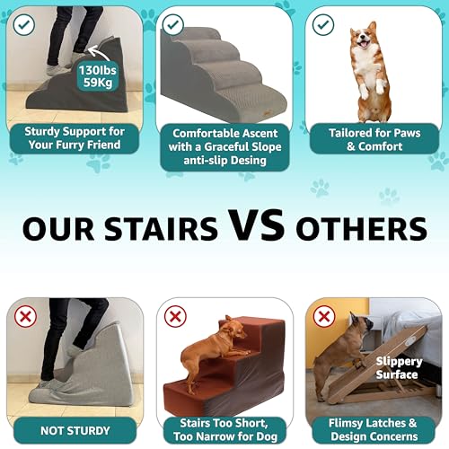 - β γπ€π¨ππππ§π¬ ππ’π‘π§π₯π’πγRelax! Our pet steps for bed undergo strict quality checks, guaranteeing safety and reliability for your pets. Fully compatible with dog stairs for large dogs & dog stairs for medium dogs. AKEBLES 4 steps for dogs to get on bed is the best choice for you and you & your pet.