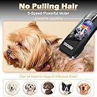 【5-Speed & Low Noise Design】The operating noise of AIBORS dog hair trimmer is less than 50dB, which is suitable for trimming heavy hair, There are 5 speed settings to choose from, Adjusting the high and low speeds to suit your pet’s comfort needs. It won’t scare your pet and make your pet feel relaxed and no longer afraid of haircuts