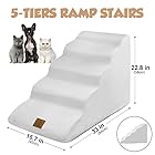 5-Tiers 23 Inches Extra High Foam Dogs Ramp Stairs to Beds, Large High Density Pet Stairs Ladder with Gentle Slope Reach High Bed,Non-Slip Bottom Machine Washable Cover,Gift 1 Lint Roller Set