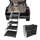 6 Steps Aluminum Sturdy Pet Dog Ramp Stairs for Small Medium Large Dogs, Folding Lightweight Ladder with Increased Nonslip Surface for Trucks, Cars, SUVs & High Bed, Supports Up to 150 Lbs