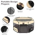 Portable and Lightweight: The pet playpen can quickly open to use from folded storage bag and fold back flat when not in use in seconds, no assembly required. Portable and lightweight design makes the play pen suitable use for outdoors, indoors, traveling, camping, etc.