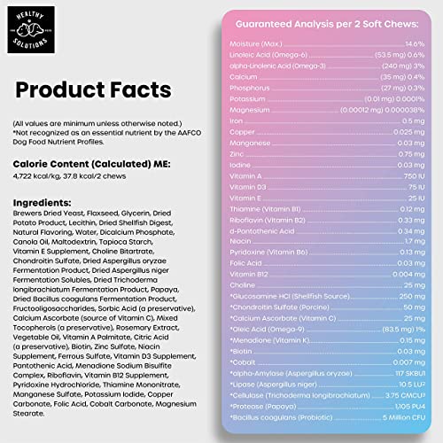 🗸 SENIOR DOG FRIENDLY — Healthy Solutions all-in-one features glucosamine and chondroitin for joint support, and probiotics to amplify the absorption of other essential nutrients from supplements and food. Designed to increase overall health and well-being of your doggy!