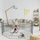 【SAFE & FOLDABLE PET PLAYPEN】:Exercise dog pen has 8 connected panels (each panel 24H Inches) easy to set up puppy pet folding playpen and take it down,folds flat for easy storage and transport.