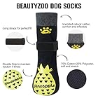 【Measure Before Order】2.55 inch paw width for Size Medium. Please make sure to measure your pet before purchase. SIZE DOWN if paw width is between two sizes. Includes 4 dog grip socks, the sock-like design makes them easy to put on and take off, great paw cover socks suitable for large dogs, small dogs, and senior dogs.