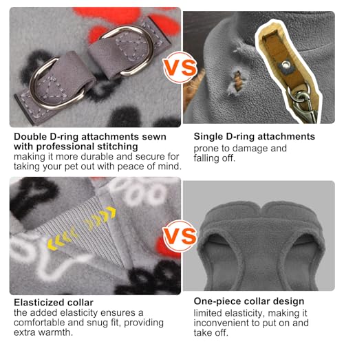 [100% Polyester Material] Machine Washable, which is easy to clean ,do not need hand wash. Soft Fleece to Keep Your Small Dog Warm All Winter Long, Made with 100% polyester to keep moisture out like freezing rain or snow, and to help keep warm air in, so your dog always stays warm. This small fleece dog vest is safe, durable, and made to last.[Double D-rings For Leash Attachment] It features two D-rings on the back to use for walks. It is easy to attach the leash,There are two pieces of leather stitched well into the clothes ,so stronger than one o-ring fleece coat . One O-ring breaks down easily, you could lose your dog if the leash attachment is not strong.