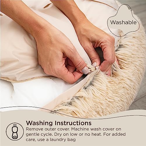 MACHINE WASHABLE BED SHELL; use zippers to remove interior fill; machine wash bed shell only; to better protect the shag material, turn shell inside out; please see our pro tips and special care instructions for more details