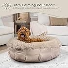 The Best Friends by Sheri Ultra Calming Pouf Bed is the epitome of luxury and comfort for your best fur friend. The orthopedic support, cuddly donut bed design, and luxe materials will pamper your pet with unparalleled relaxation, while the neutral tones will seamlessly blend with your unique home style. This dog bed is machine washable for convenience: unzip to remove the interior bolsters and machine wash the faux fur top and base cover to keep your pet’s sanctuary fresh and clean. But this bed isn’t just about convenience; it offers premium relaxation for improved well-being. The overstuffed, elevated bolsters cradle your pet’s head and neck to provide support and a sense of cuddled-up security, essential for peaceful sleep. This orthopedic dog bed combines shredded foam and polyfill that’s firm yet gentle, offering superior joint support and exceptional comfort. Luxuriously soft faux fur on top and a faux suede base create an inviting haven that your pet will adore. The neutral color palette and tonal, pleated, and tufted design add a touch of elegance to any home decor. Treat your furry best friend to the luxurious relaxation they deserve. Choose the Best Friends by Sheri Ultra Calming Pouf Bed.