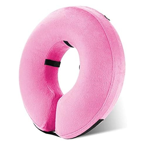 ✔Adjustable And Easy to Store – You can easily adjust the inflatable donut collar strap for a perfect fit and put the strap side at the back of your dog’s neck in case of biting. The inflatable donut design allows you to deflate it so you can store for space-saving when you do not use. And there is a zipper opening on one side of this recovery collar, you can take the collar out and wash the outside cloth.