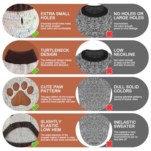 [SUPER WARM AND COMFY]: Our dog sweater is very cozy and warm. Especially the thick turtleneck type offers extra warmth to the neck. Your pet would love it and willing to wear it, even sleeps in it on cold nights, even won’t willing to go outside without it.