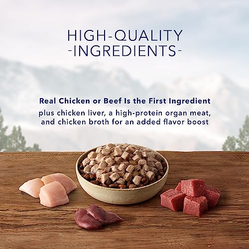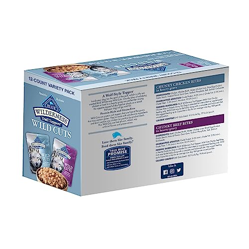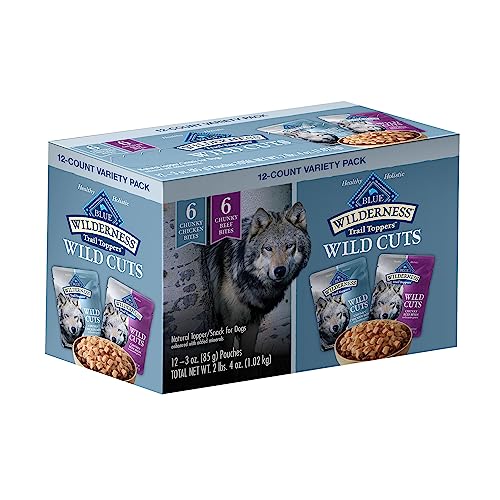 Ideal for making your best friend’s favorite BLUE dry dog foods even tastier or for feeding as a snack, our BLUE Wilderness Trail Toppers wet dog food toppers feature tender morsels of real chicken or beef in a hearty gravy sure to satisfy your dog’s wild side. With real chicken or beef as the first ingredient, this grain free recipe features only the finest natural ingredients enhanced with vitamins and minerals.