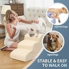 BOMOVA Dog Stairs for Small Dogs, 3-Step Dog Steps for Bed and Couch, High Density Foam Pet Stairs for Small Dogs and Cats, Non-Slip Bottom Dog Ramp, Beige, 2/3/4/5 Steps