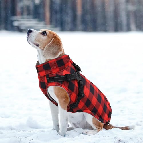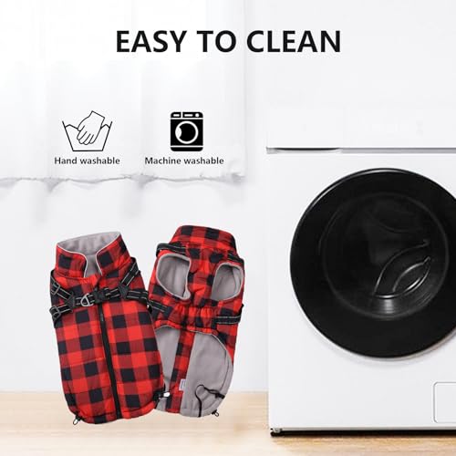 ▶Waterprood dog coat – The plaid dog jackets are made of double layer by high quality waterproof polyester fabric and warm fleece lining. and will provide a perfect protection for your dog during the bad weather and keep your lovely pet warm during the cold weather.