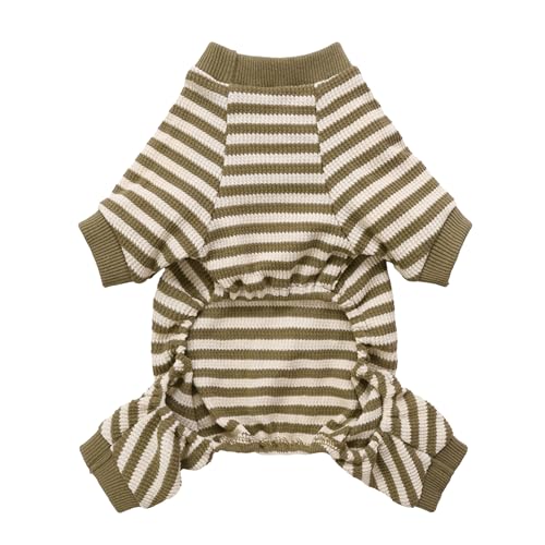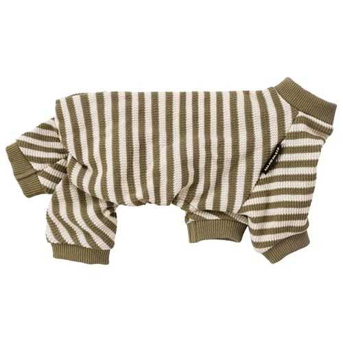 Four-legged sleepwear features a classic brown and white stripe design. With snug ribbed cuffs, providing a comfortable, protective, and stylish fit for your doggie.
