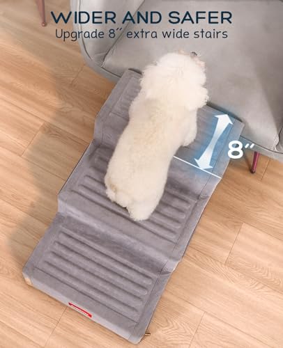 Extra Wide Dog Steps: With extra wide steps, our pet stairs ensure a steady and comfortable ascent to your bed or couch. Your pet will conquer those heights with ease, giving them the freedom to snuggle up beside you whenever they please.