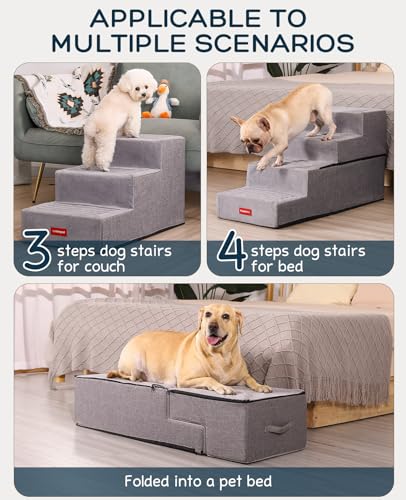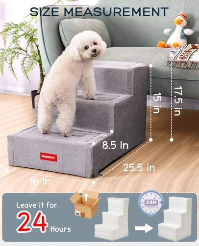 BurgeonNest Extra Wide Dog Stairs for Small/Medium Dogs Climbing High Bed and Couch, Folding Pet Stairs with Removable Washable Cover & Anti-Slip Bottom (3 Steps – Height: 15‘’)