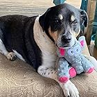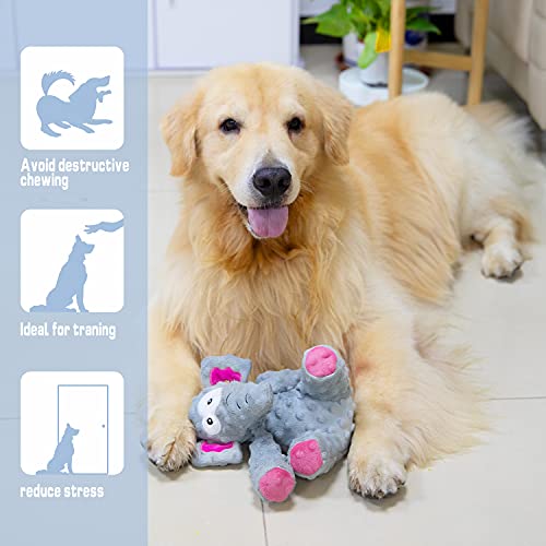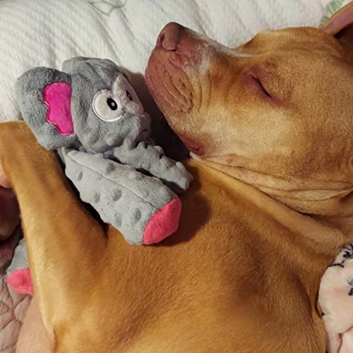 ❤【Safe Soft Dog Toys】This stuffed dog toy is covered in soft, textured, gray with pink plush, and the body is stuffed with natural cotton. High quality materials will not hurt dogs like inferior toys, so you can rest assured to choose it for your beloved dogs. This dog toys is specially designed forPuppy ,Small, Medium, and Large Breeds