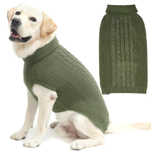 Cable Knit Dog Sweaters for Small Medium Large Dogs with Reflective Yarn for Fall Winter, Soft Warm Dog Clothes for S M L Sized Breeds Dogs, Pullover Dog Knitwear with Leash Hole, Green XXL