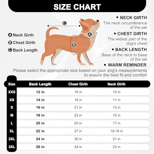 8 SIZES TO CHOOSE FROM – Sweater for dogs are suitable for small, medium, and large dogs, XXS, XS, S, M, L, XL, 2XL, and 3XL, with 8 sizes to choose from. Suitable for Yorkshire Terrier, Poodle, Dachshund, French Bulldog, Beagle, Labrador, Chihuahua, Golden Retriever, and other small, medium, and large dogs. Different dog breeds have unique body proportions, MEASURE your dog’s chest and back length accurately before purchasing dog clothes.
