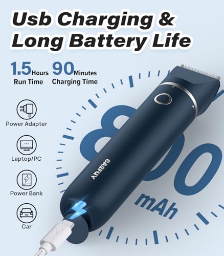 【Safe, Effective & Precision Trimming】- Casfuy dog clippers come with double blades which are made of stainless steel and ceramic to keep sharp and ensure safety during use. A standard head (1”) and a compact head(0.4”) are ideal to remove hair from ears, face, paws and rump of dogs, cats and other animals.