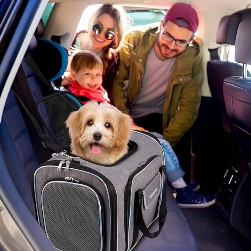 Expandable Pet Carrier】: The four-open expansion pack extends 18″Lx 11″Wx 11.5″H and can accommodate up to 18 pounds.Travel in style with our four-side expandable pet carrier that is airline approved and perfect for cats, puppies, and small dogs.